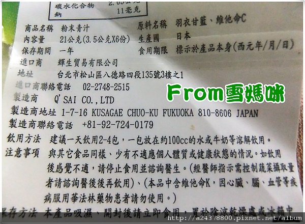 個人是感覺青豐的粉末青汁泡白開水的話,口味並不是雪所喜愛的